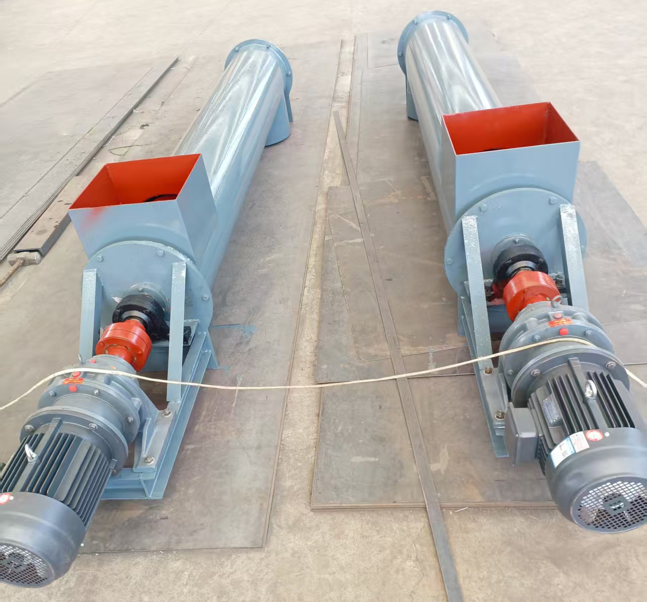 螺旋輸送機廠家供應高品質(zhì)的螺旋輸送機。型號齊全。下面詳細介紹一下:螺旋輸送機是一種利用電機帶動螺旋回轉,推移物料以實現(xiàn)輸送目的的機械。它能水平、傾斜或垂直輸送,具有結構簡單、橫截面積小、密封性好、操作方便、維修容易、便于封閉運輸?shù)葍?yōu)點。螺旋輸送機在輸送形式上分為有軸螺旋輸送機和無軸螺旋輸送機兩種,在外型上分為U型螺旋輸送機和管式螺旋輸送機。有軸螺旋輸送機適用于無粘性的干粉物料和小顆粒物料.(例如:水泥、粉煤灰、石灰、糧等)而無軸螺旋輸送機適合輸送機由粘性的和易纏繞的物料。(例如:污泥、生物質(zhì)、垃圾等)螺旋輸送機的工作原理是旋轉的螺旋葉片將物料推移而進行螺旋輸送機輸送,使物料不與螺旋輸送機葉片一起旋轉的力是物料自身重量和螺旋輸送機機殼對物料的摩擦阻力。螺旋輸送機旋轉軸上焊的螺旋葉片,葉片的面型根據(jù)輸送物料的不同有實體面型、帶式面型、葉片面型等型式。螺旋輸送機的螺旋軸在物料運動方向的終端有止推軸承以隨物料給螺旋的軸向反力,在機長較長時,應加中間吊掛軸承。