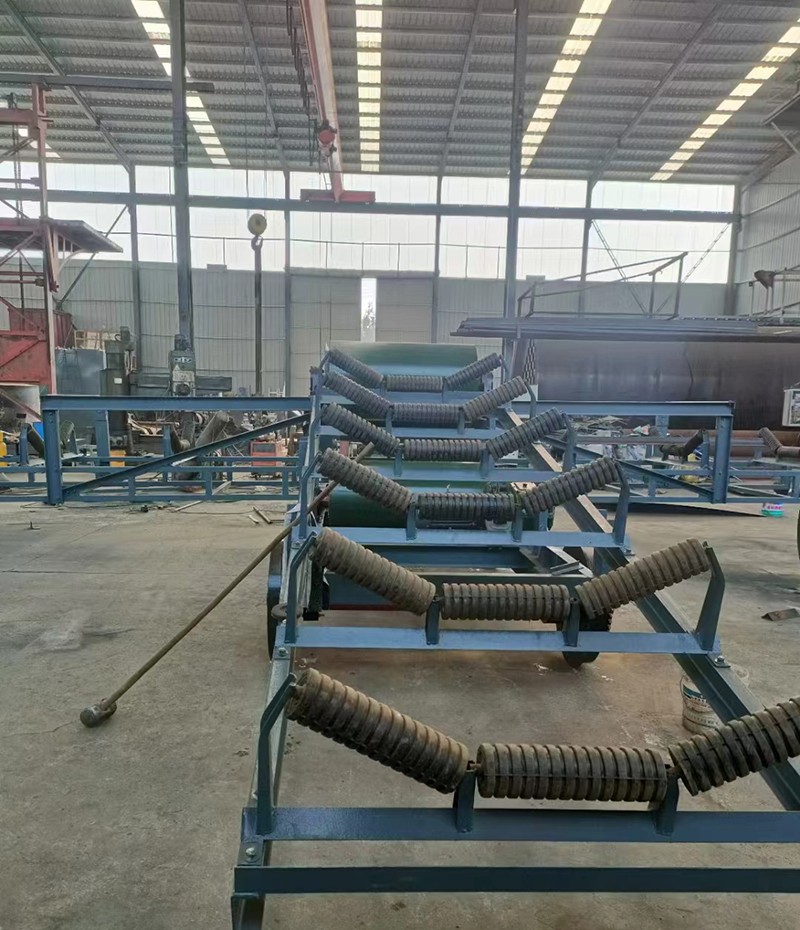 皮帶輸送機(jī)是一種摩擦驅(qū)動以連續(xù)方式運(yùn)輸物料的機(jī)械。主要由機(jī)架、輸送帶、托輥、滾筒、張緊裝置、傳動裝置等組成。它可以將物料在一定的輸送線上,從供料點(diǎn)到卸料點(diǎn)間形成一種物料的輸送流程。它既可以進(jìn)行碎散物料的輸送,也可以進(jìn)行成件物品的輸送。除進(jìn)行純粹的物料輸送外,還可以與各工業(yè)企業(yè)生產(chǎn)流程中的工藝過程的要求相配合,形成有節(jié)奏的流水作業(yè)運(yùn)輸線。
